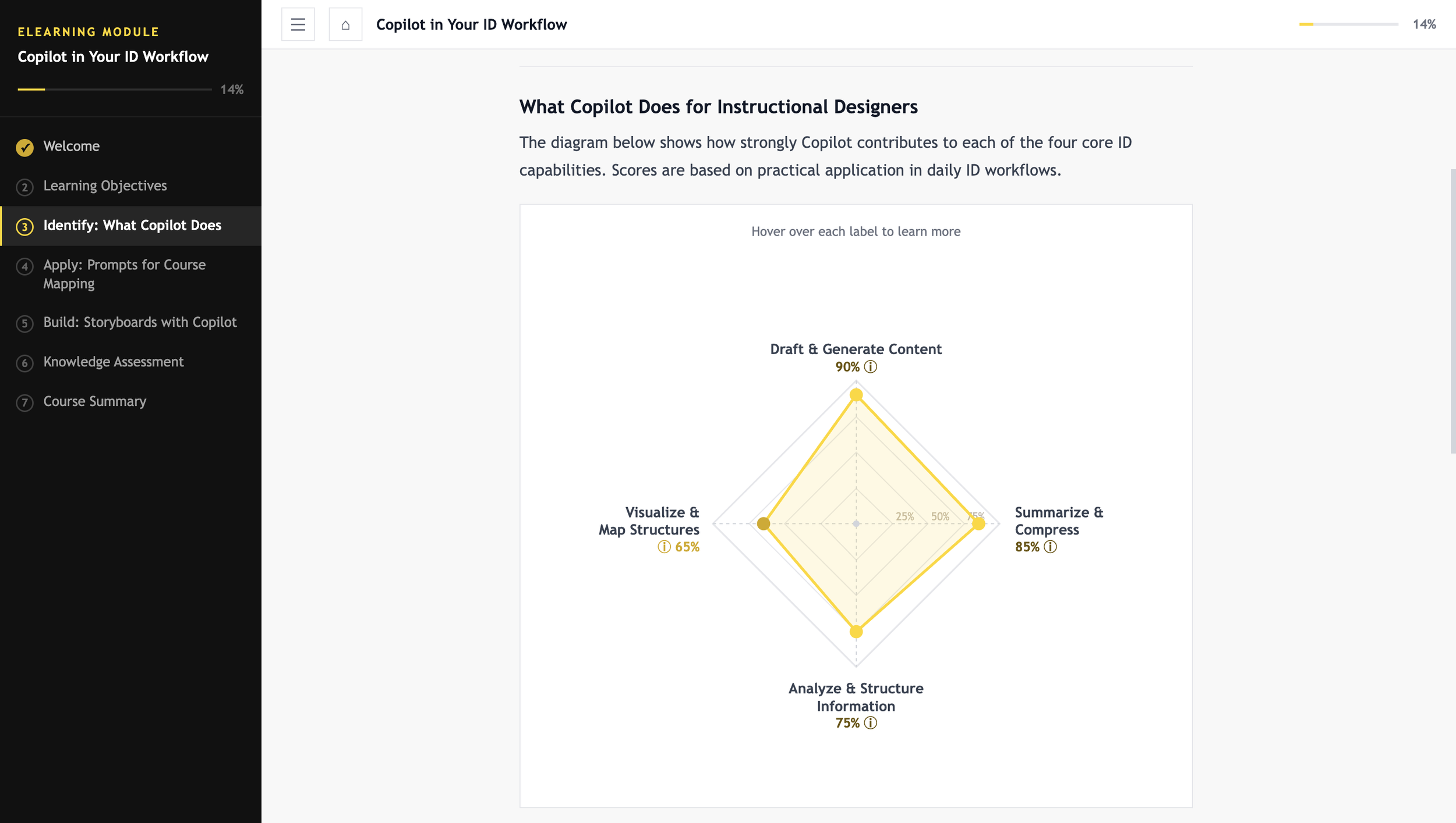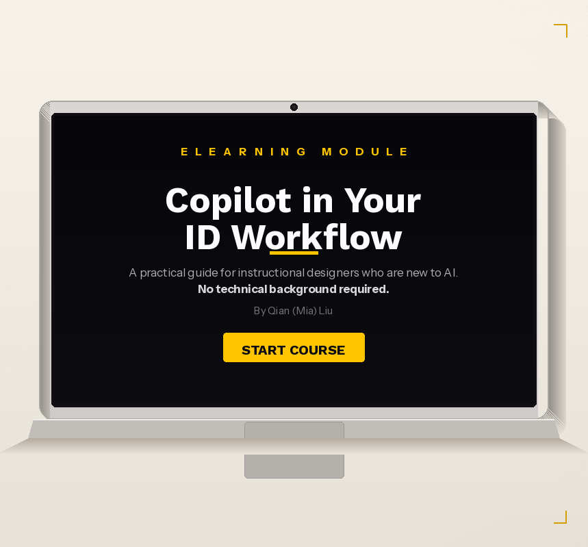 Copilot in Your Instructional Design Workflow is a prototype eLearning course built to show how AI tools can be used to develop a web-based training experience from scratch. This is a proof-of-concept focused on demonstrating the development process, not a full production course.
